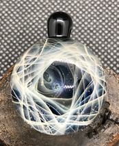 宇宙空間の銀河を思わせるような立体模様が特徴的な耐熱性ガラスのペンダントです。
