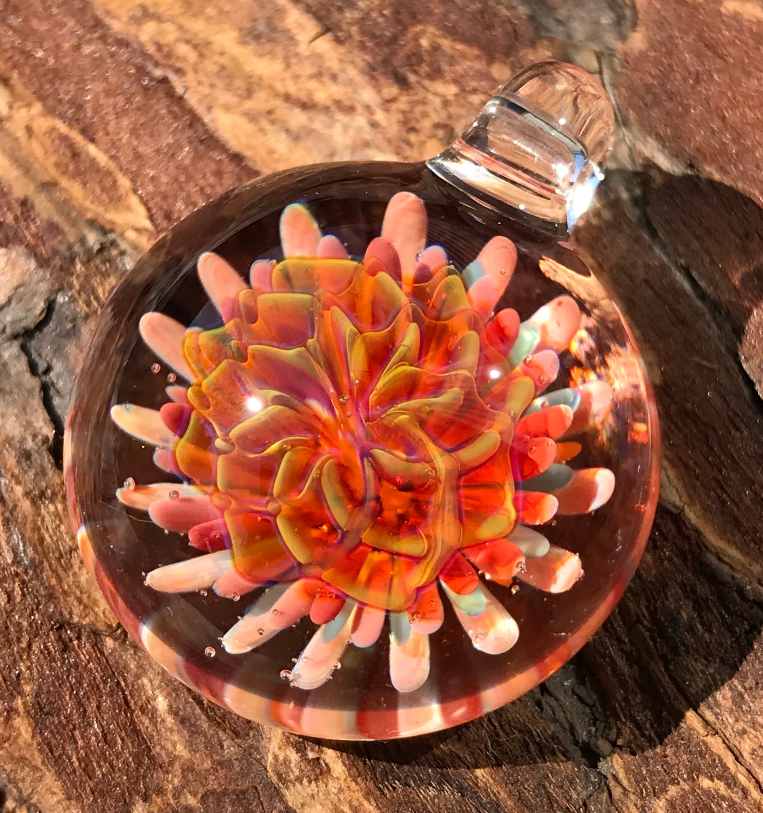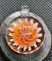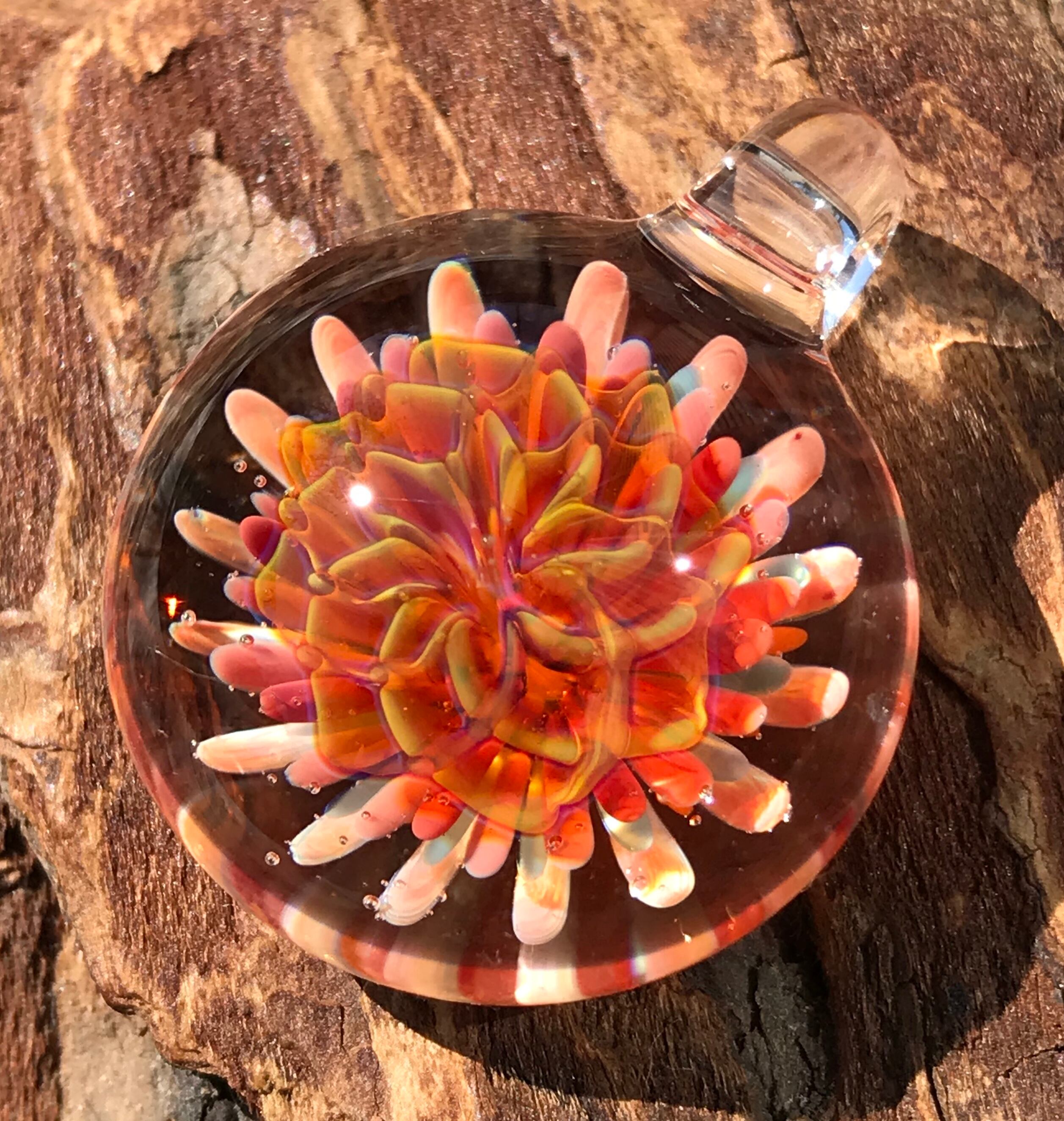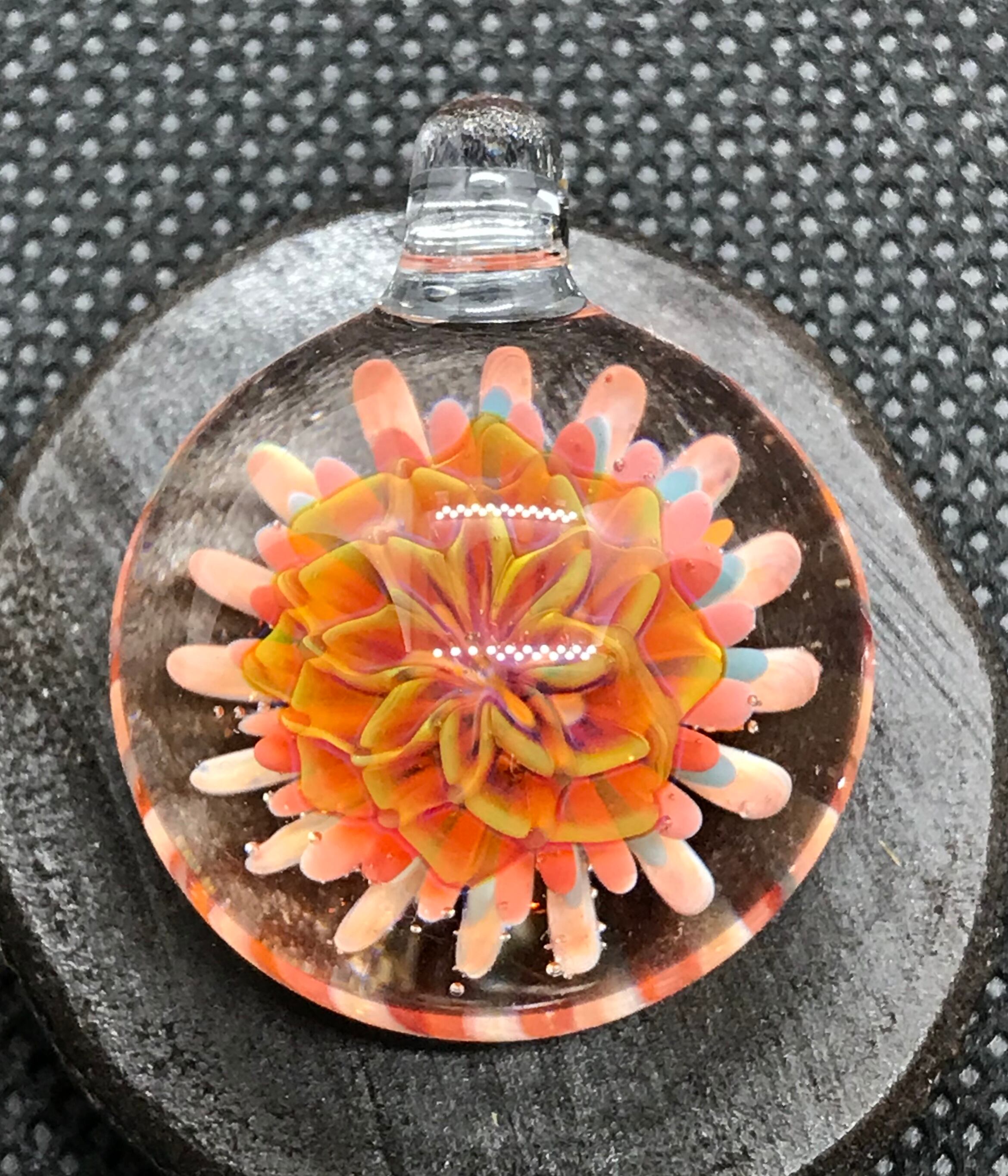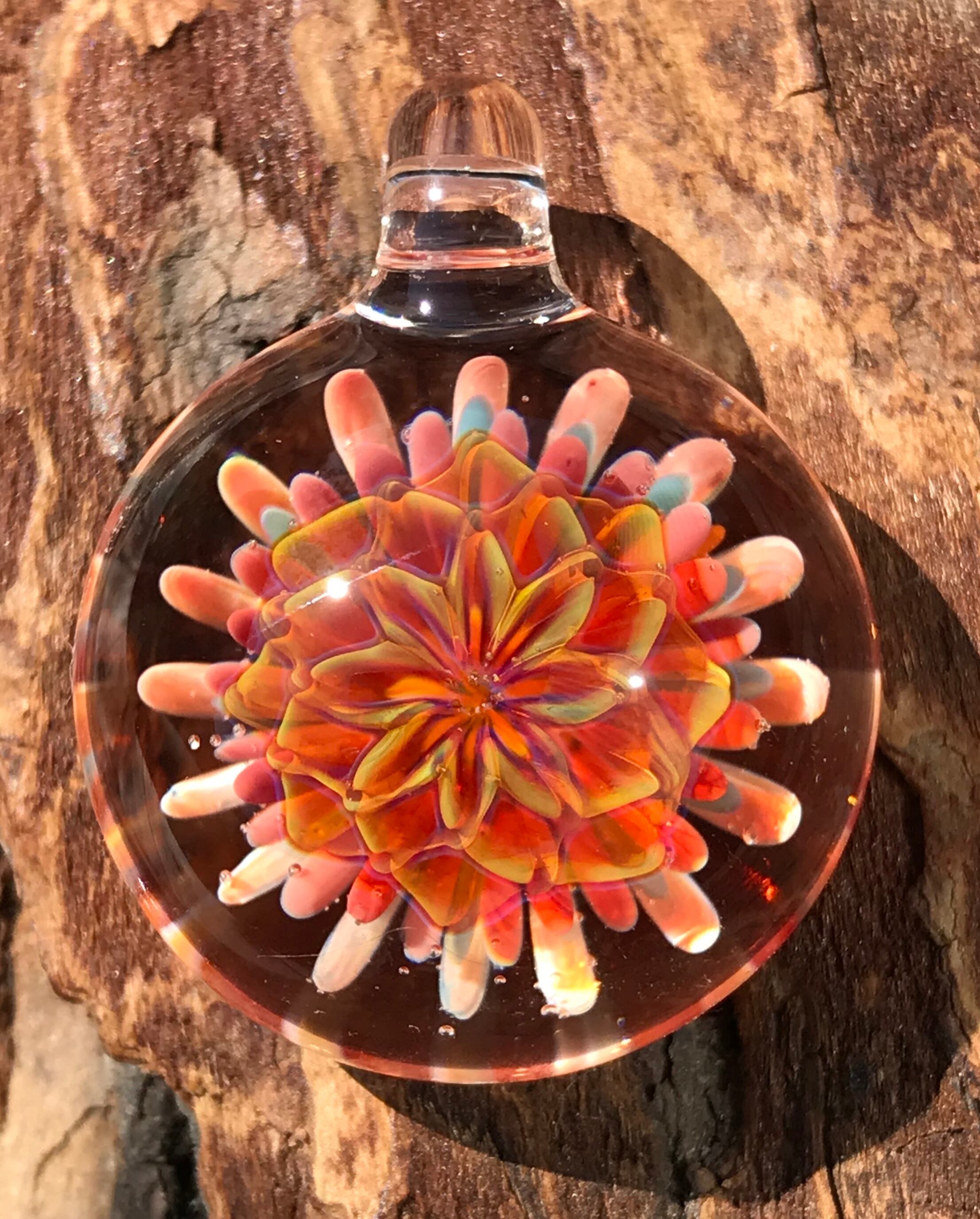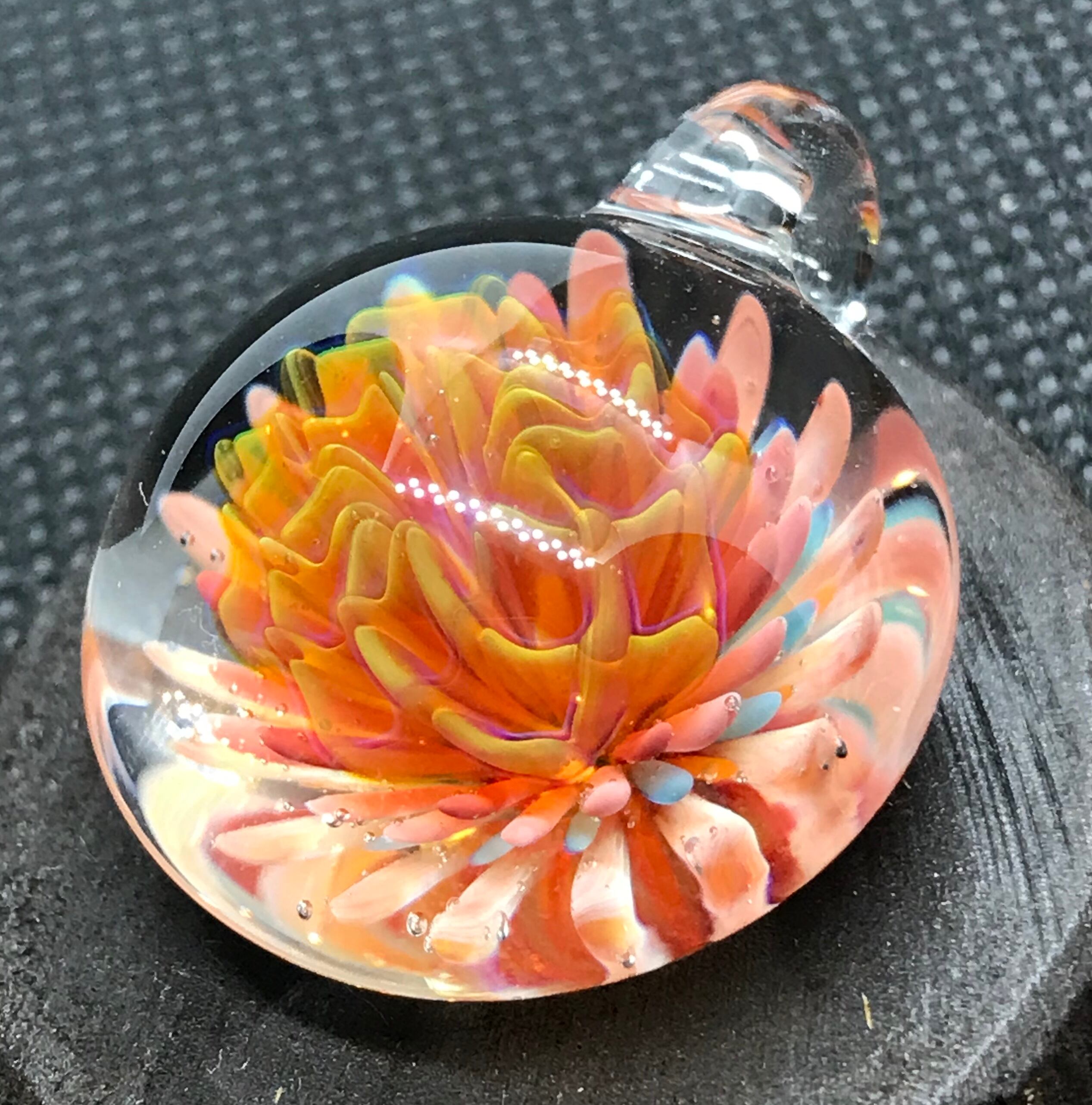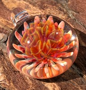 2000度以上にもなる酸素バーナーで耐熱ガラスを溶かして、ハンドメイドで製作された一つだけのペンダントです。