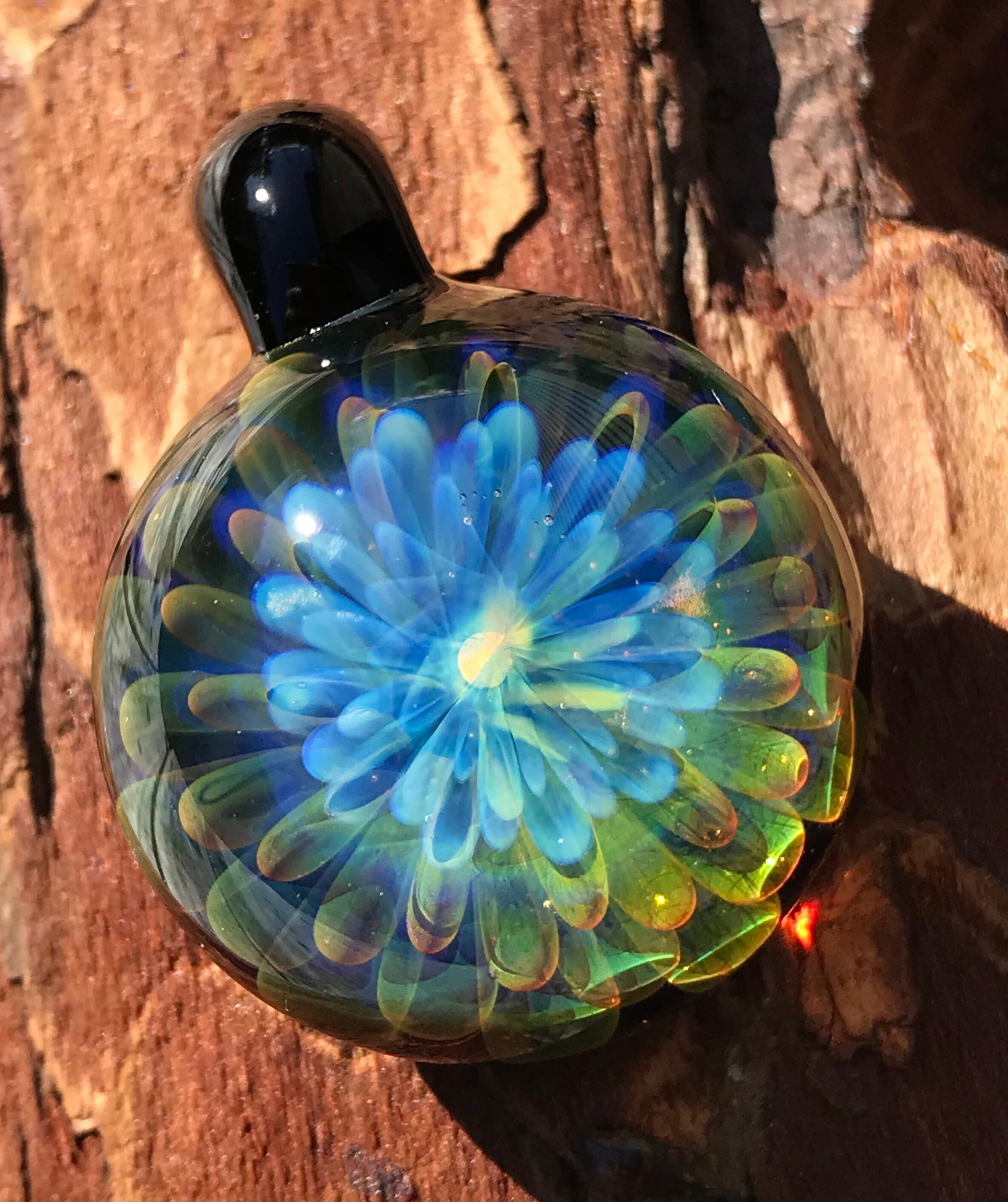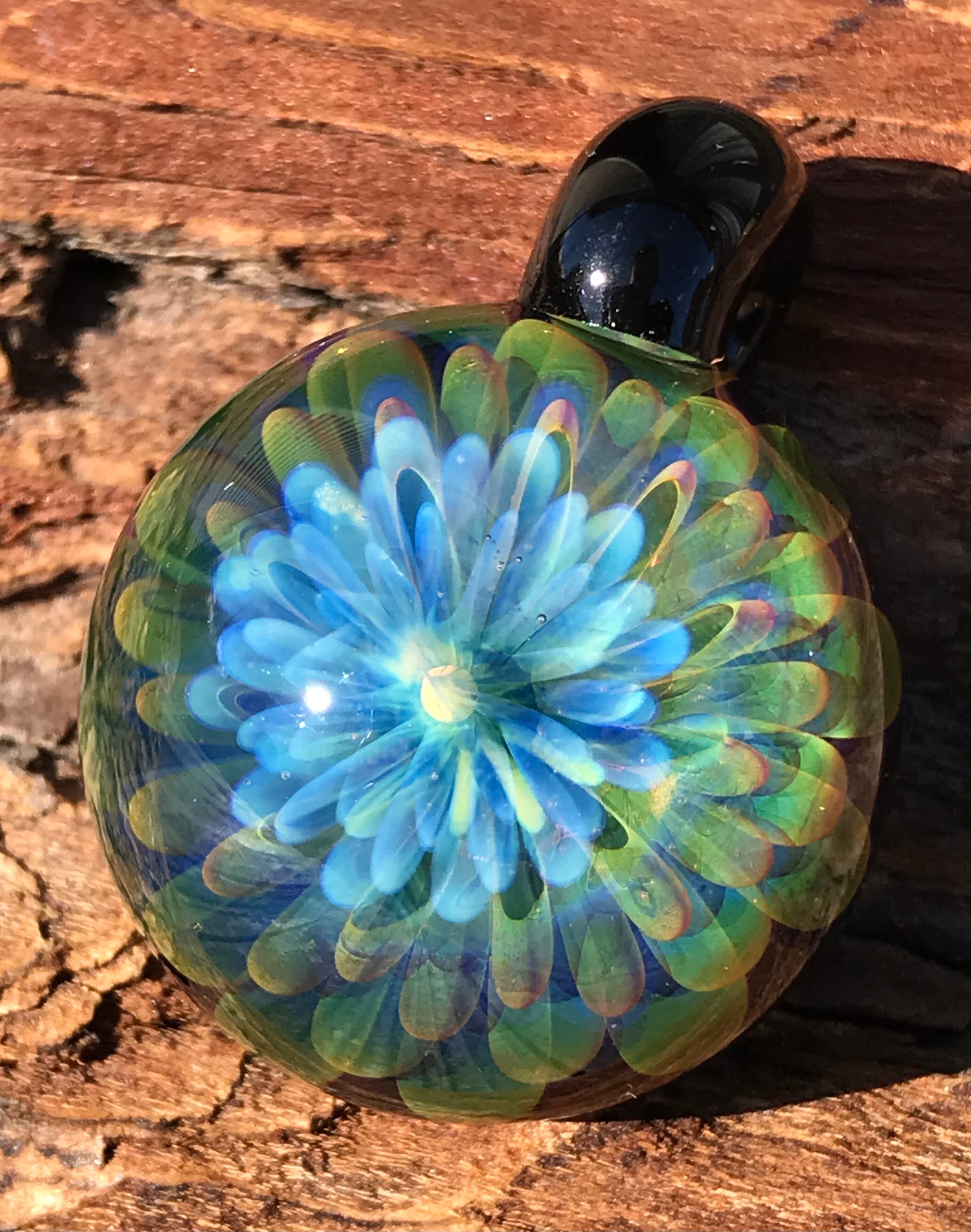 酸素を使用した酸素バーナーで2000度以上の温度で耐熱ガラスを溶かし、手作業で製作された一つだけのガラスペンダントです。