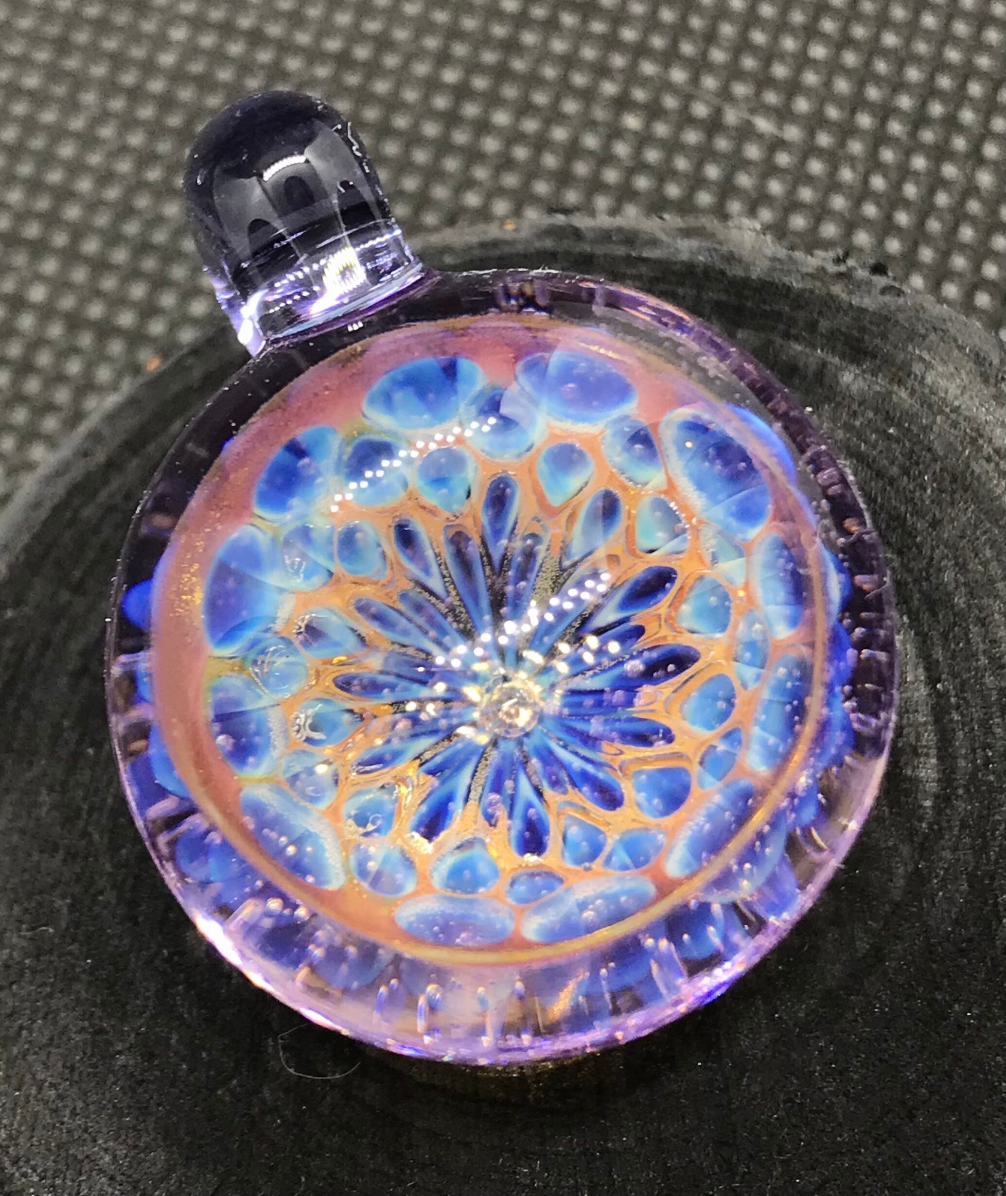 酸素バーナーを使用して2500度の温度で耐熱ガラスを溶かし、ハンドメイドで製作された一つだけのガラスペンダントです。