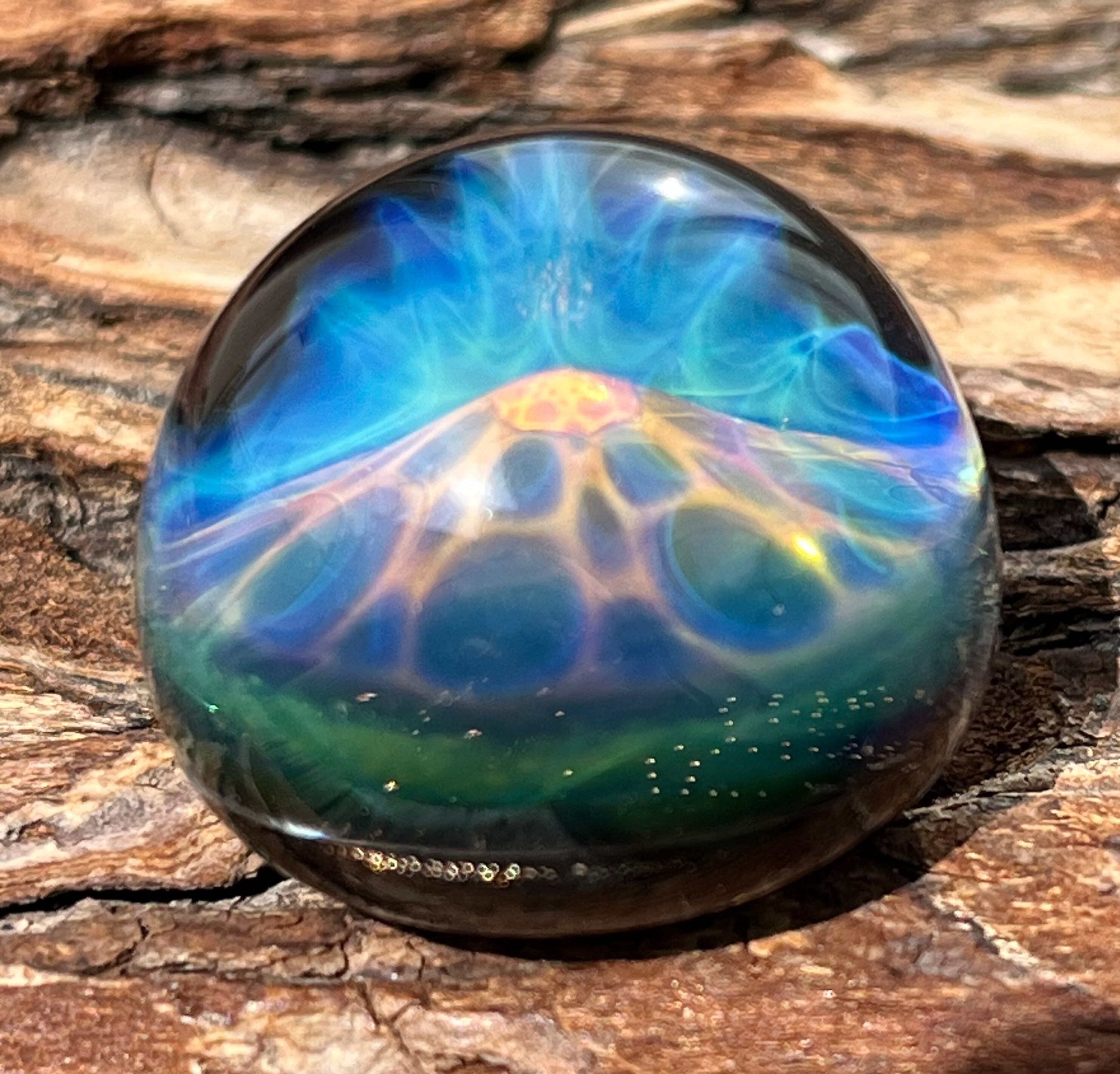 酸素を使用した酸素バーナーで2000度以上の温度で耐熱ガラスを溶かし、手作業で製作された一つだけのガラスペンダントです。