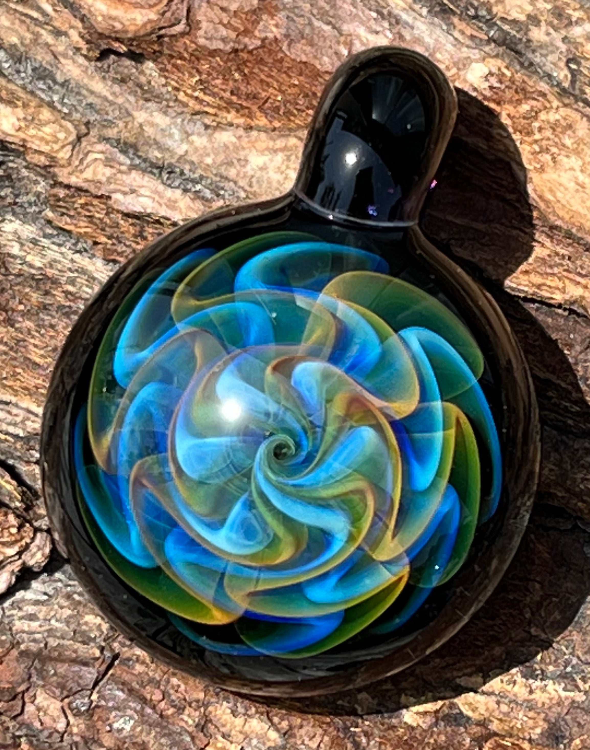 ボロシリケイトガラス(耐熱性ガラス)のハンドメイドペンダントです。