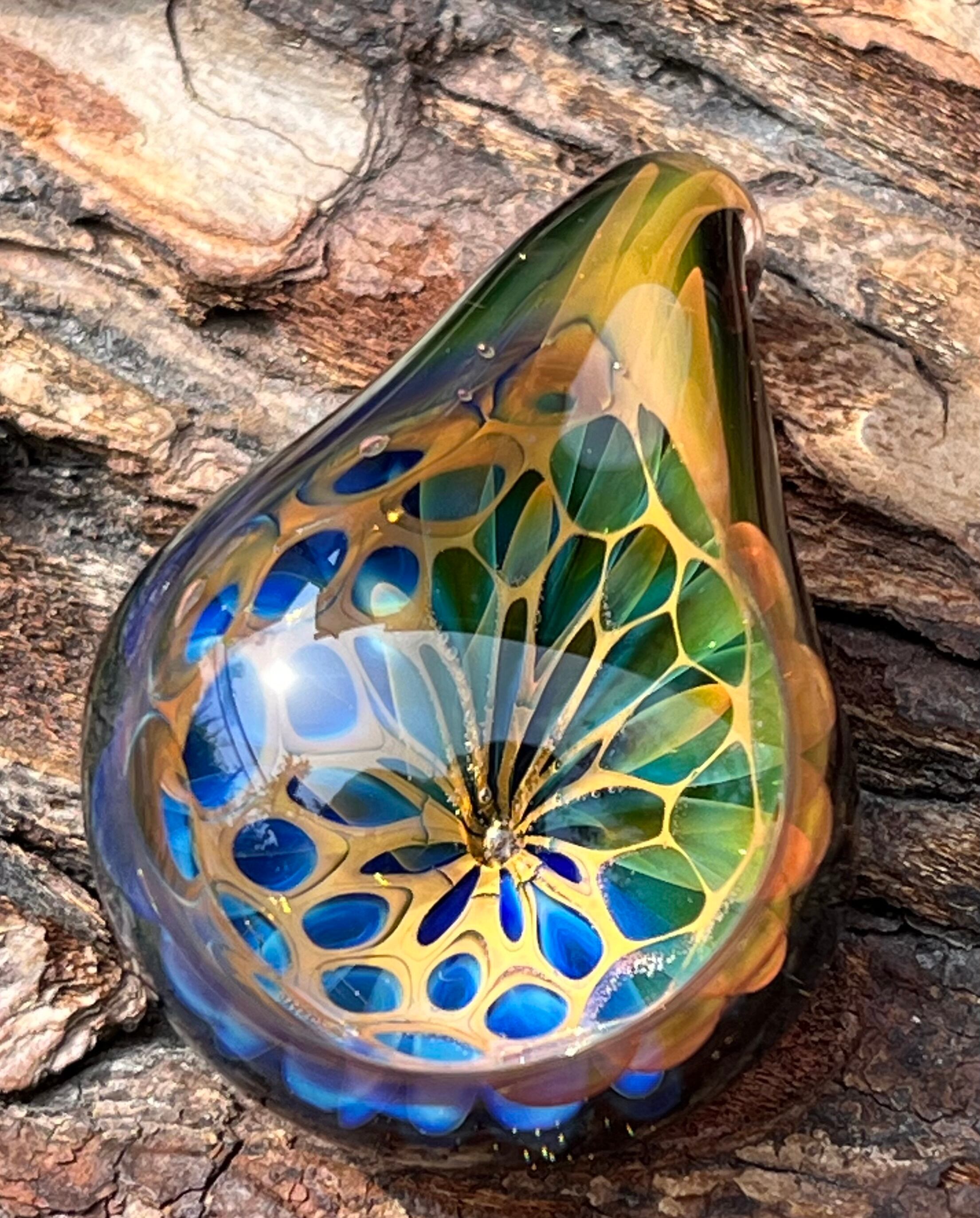 boroccus インサイドアウト ブルー&グリーン 立体幾何学模様 ボロシリケイトガラスペンダント