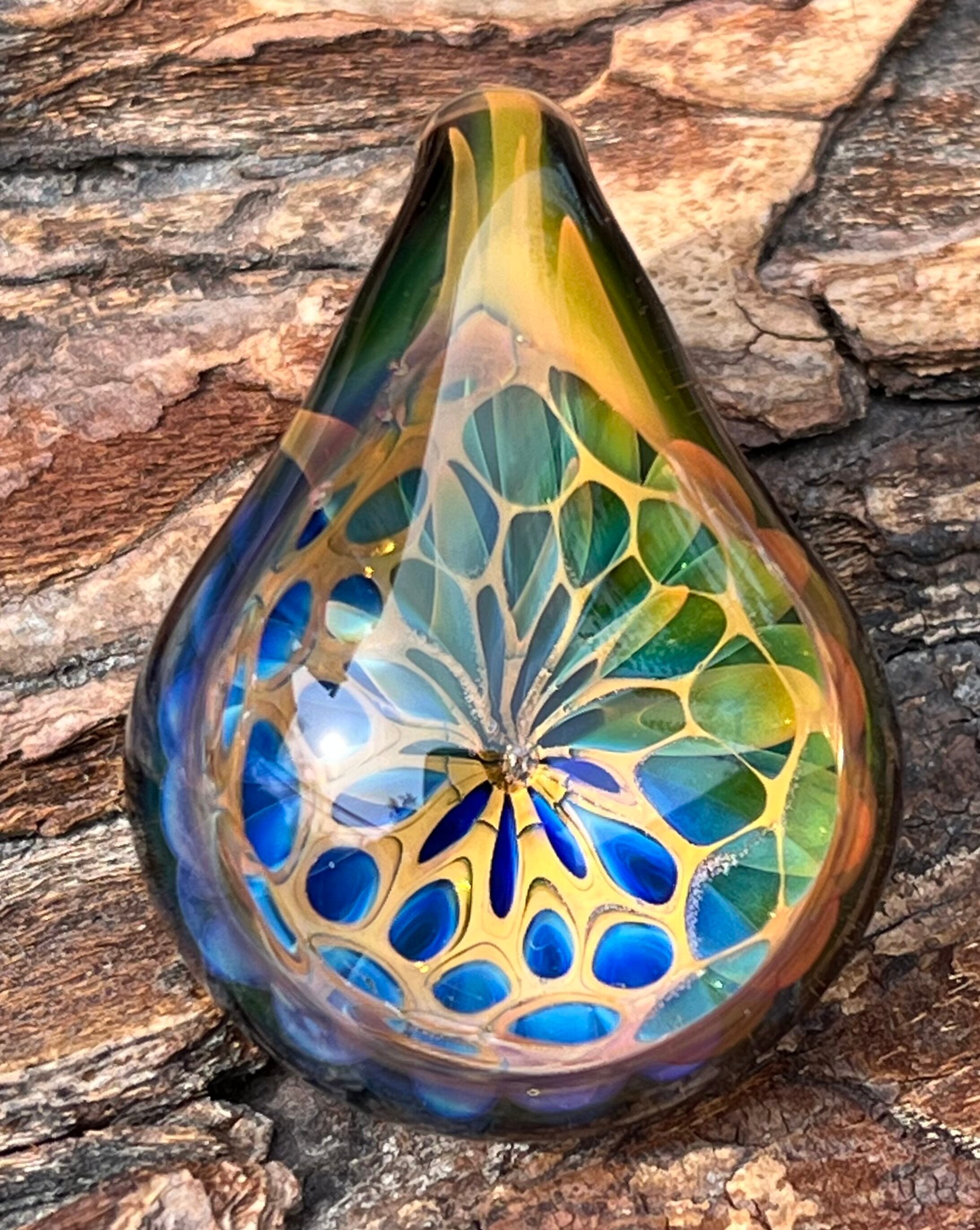 酸素を使用した酸素バーナーで2000度以上の温度で耐熱ガラスを溶かし、手作業で製作された一つだけのガラスペンダントです。
