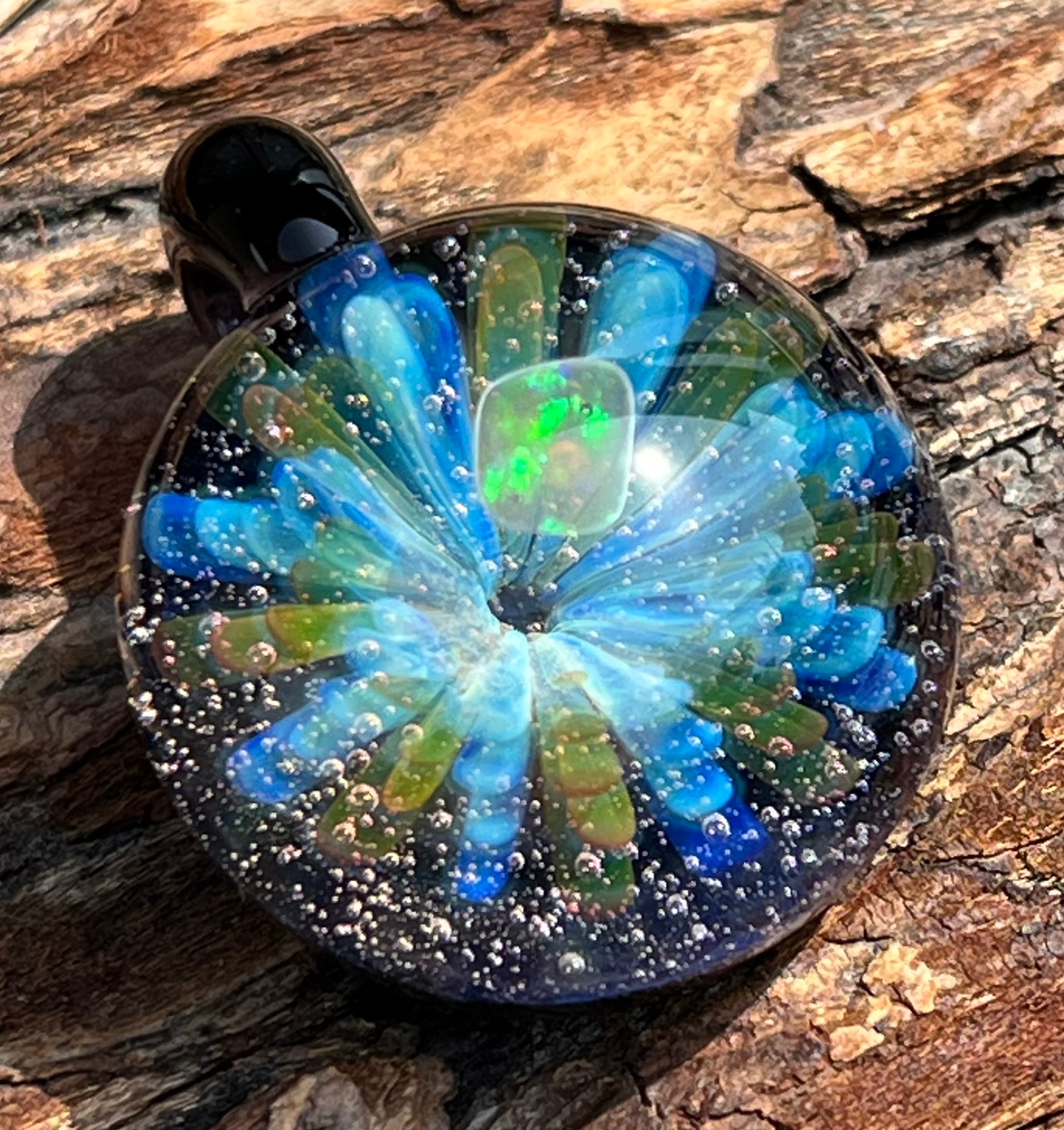 ボロシリケイトガラス(耐熱ガラス)の一つだけのハンドメイドペンダントです。